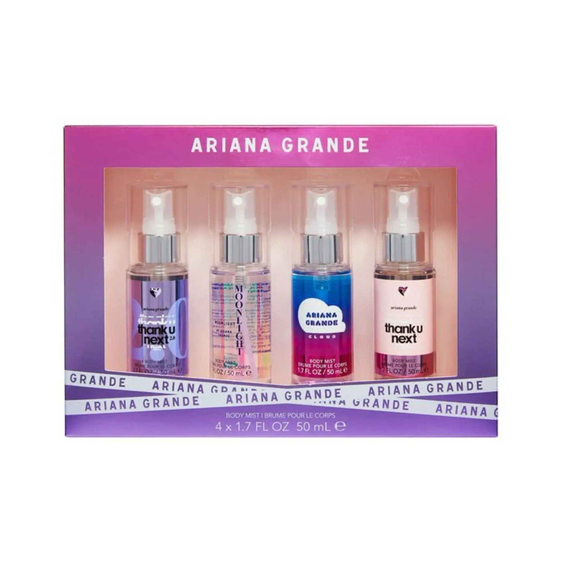 ¡Las mejores cosas vienen en paquetes pequeños! El juego de regalo imprescindible de Ariana Grande Fragrances. Esta caja de niebla corporal de 4 piezas para mujer es la manera perfecta de poner tus fragancias favoritas.