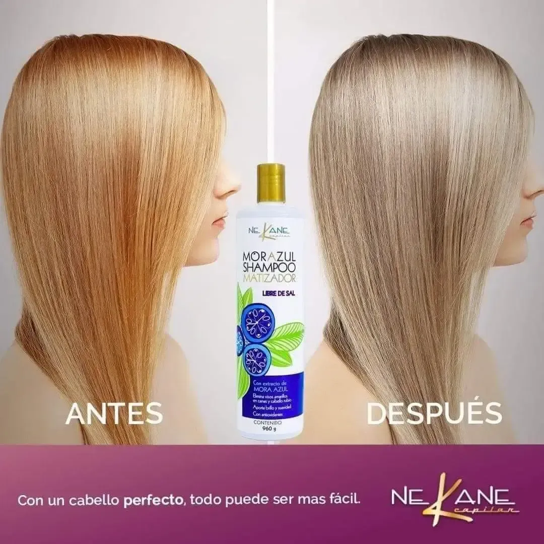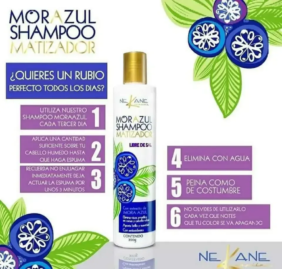 Su extracto de mora azul aporta antioxidantes, brillo y suavidad al cabello. Es el complemento ideal de la mascarilla matizadora MORAZUL.