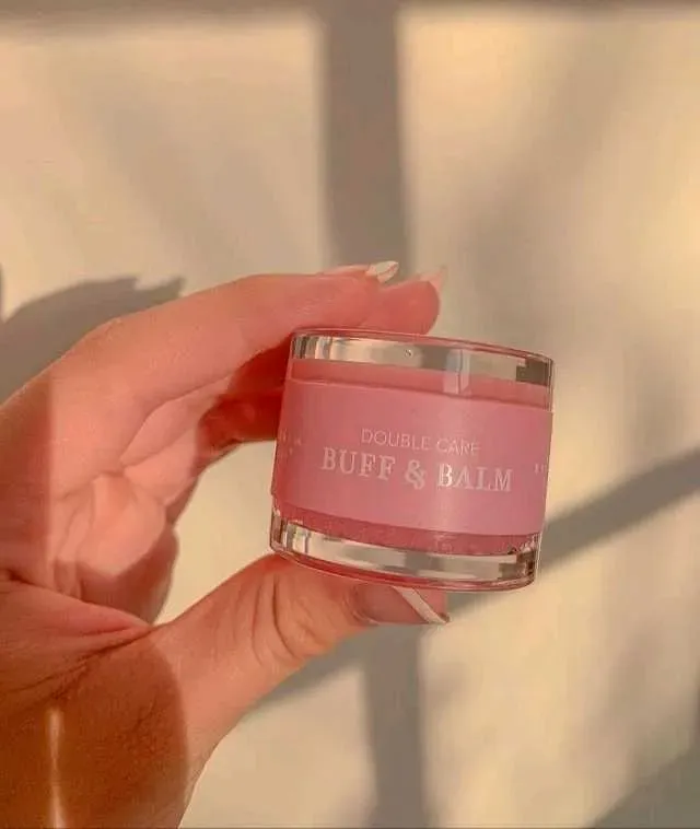 El exfoliante de azúcar y reparador de labios Buff & Balm está elaborado con azúcar, vitamina E y aceite de jojoba. Le dará a tus labios la máxima exfoliación y nutrición.
