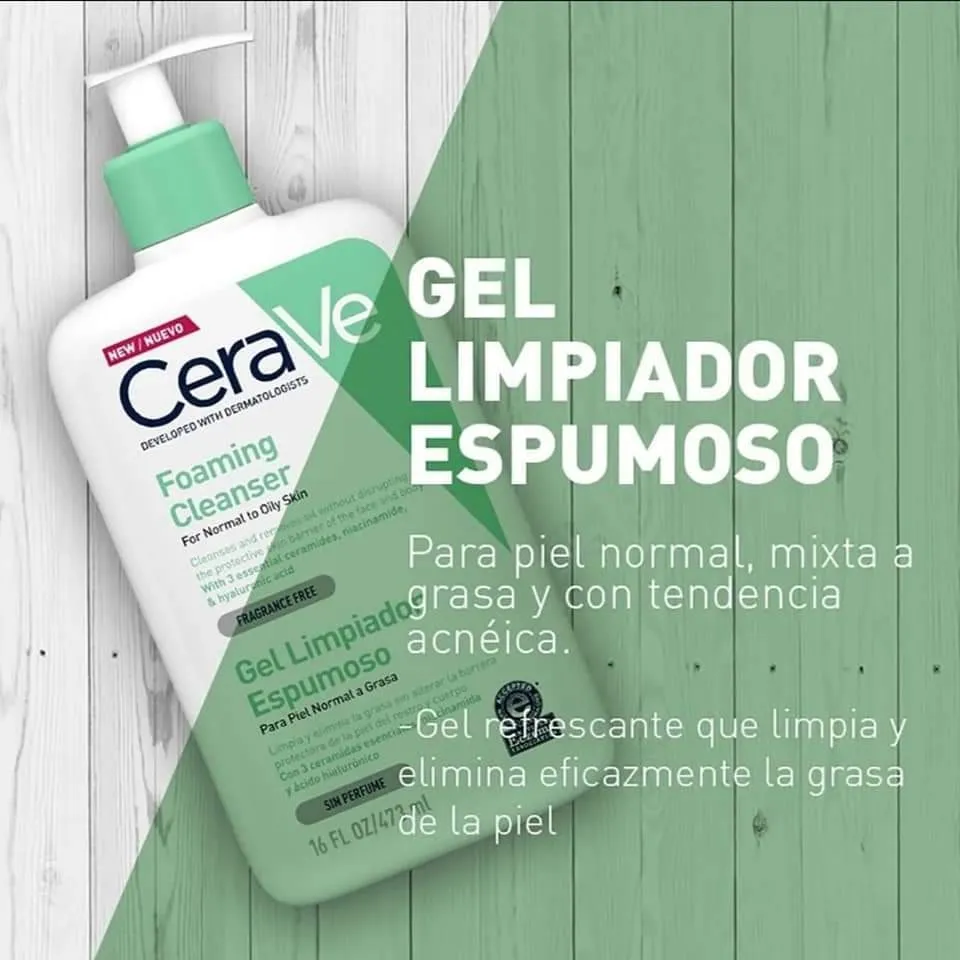 Un limpiador facial con textura de gel a espumosa, el cual es ideal para eliminar el exceso de grasa y suciedad. El Gel Limpiador Espumoso de CeraVe contiene 3 ceramidas esenciales, ácido hialurónico y niacinamida para ayudar a restaurar la barrera protectora de la piel, hidratar y calmar la piel. D...