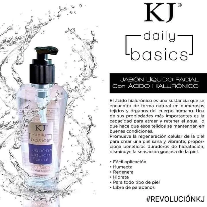 El jabón facial de Kj es ideal para uso diario, contiene acido hialurónico, una de sus propiedades más importantes, es la capacidad para humectar y retener el agua, lo que hace que esos tejidos se mantengan en perfectas condiciones. Promueve la regeneración celular de la piel, así la mantiene sana y...