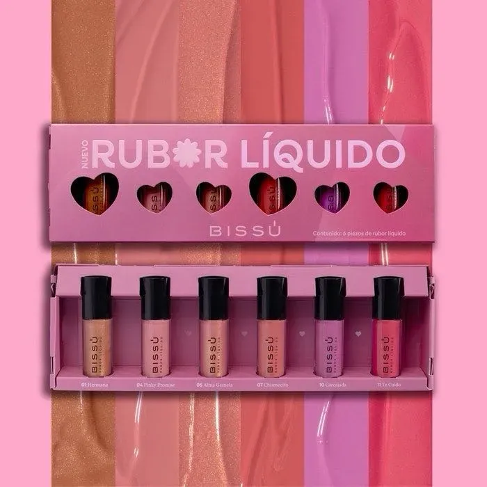 Un Rubor Líquido no es suficiente, ¿pero qué tal SEIS? ¡Así como lo leíste! Nuestro Nuevo tiene la combinación perfecta de tonos que van desde los más solicitados rosas hasta los atrevidos para que digas ¡Wow! (01 Hermana, 04 Pinky Promise, 05 Alma Gemela, 07 Chismecito, 10 Carcajada y 11 Te Cuido),...
