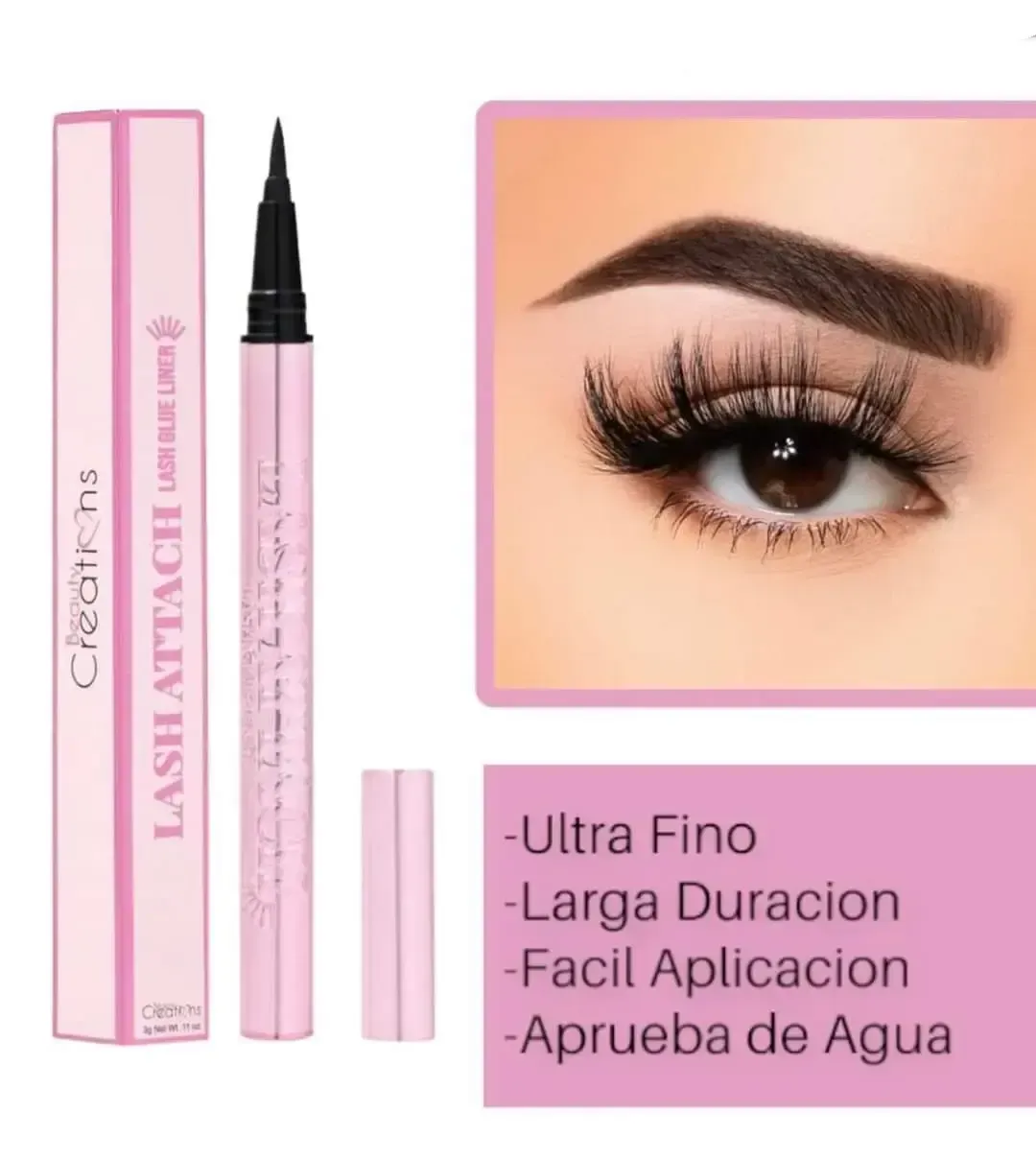 Cautiva a todos con este nuevo Delineador Adhesivo de Pestañas “Lash Attach” Negro Beauty Creations que gracias a su fórmula dos en uno podrás maquillar tus ojos y pegar tus pestañas a la vez. Este delineador adhesivo de color negro es de alta pigmentación y de larga duración el cuál dejará tus pest...