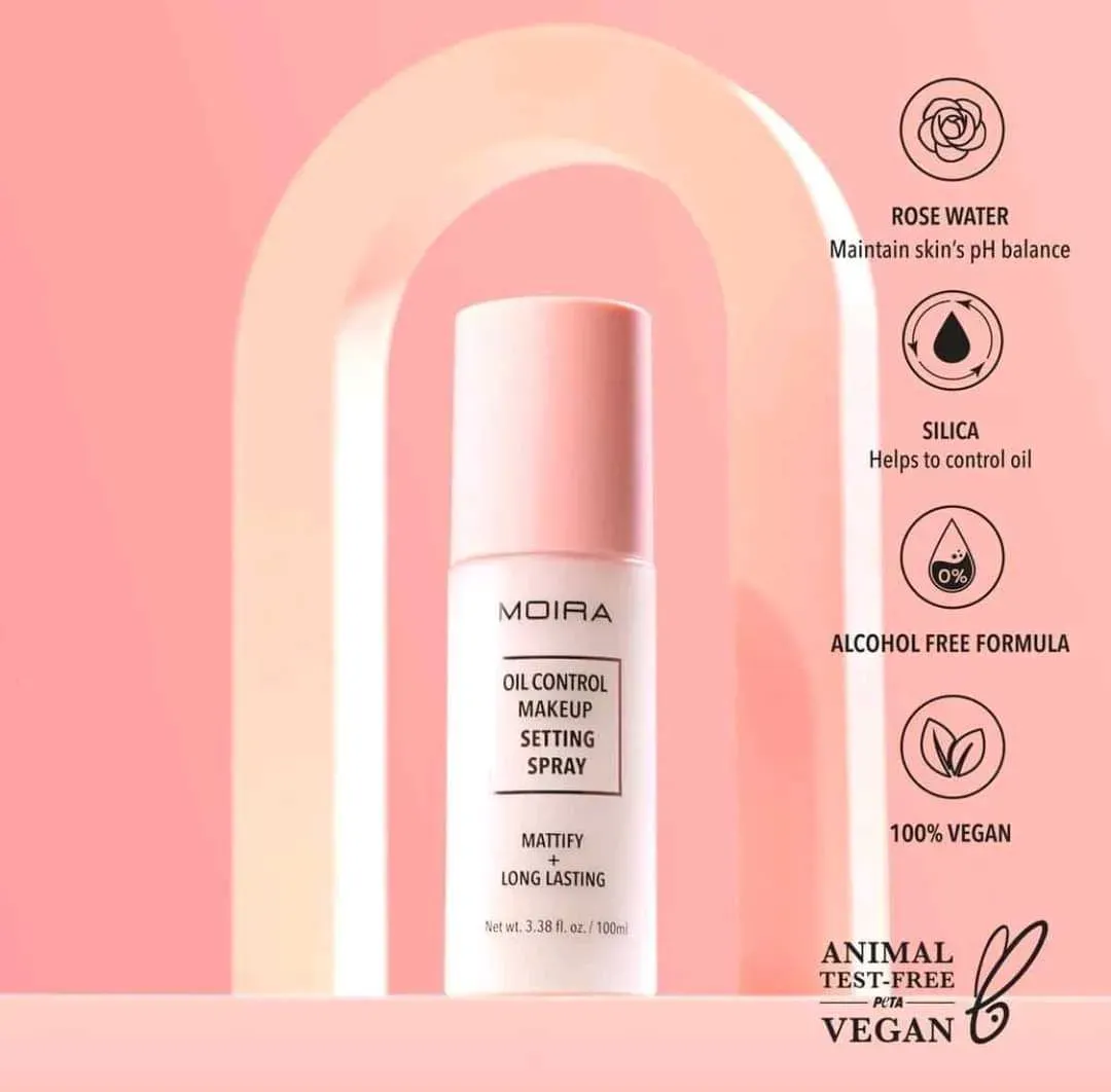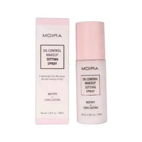 El spray fijador de maquillaje con control de aceite MOIRA es un spray fino y ligero para un acabado matificante que actuará como una capa invisible para sujetar y fijar el maquillaje durante todo el día sin resecar la piel.