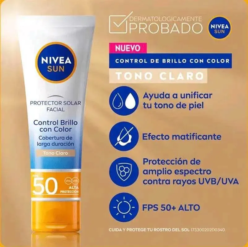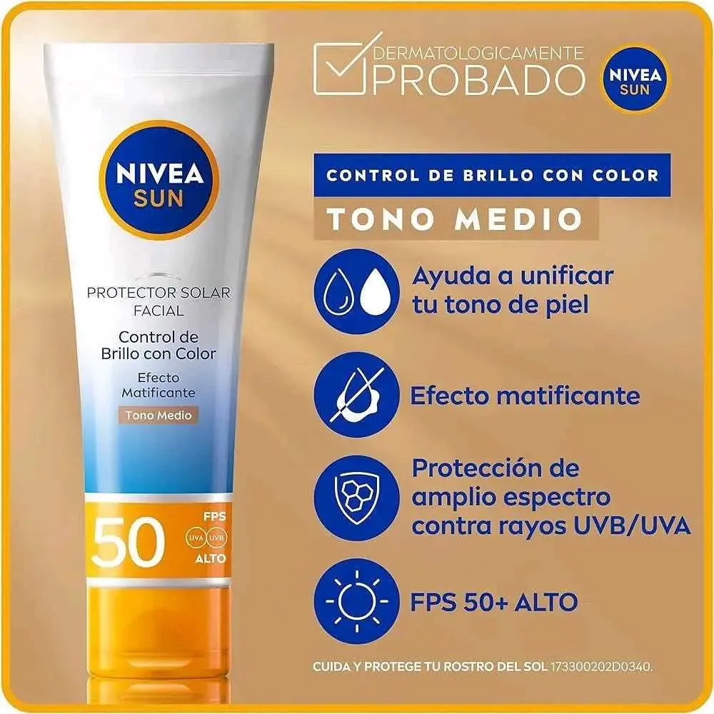 Protector Solar Facial CON COLOR FPS 50 Control Brillo - Nivea